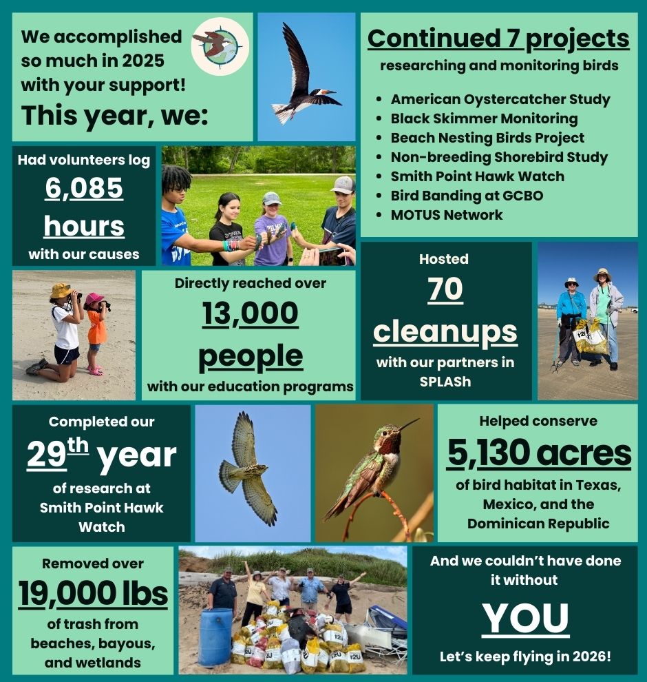 Gulf Coast Bird Observatory is an independent non-profit organization headquartered on the upper Texas coast. We are an innovative conservation organization, conducting avian conservation projects and distributing high quality information that will provide a scientific basis for the protection of birds. We fulfill our mission of protecting the birds and their habitats through research, land protection, outreach, and education.