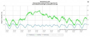 The storms that lasted Monday through Wednesday carried with them winds over 20 mph with lots of rain and high tides. Here’s a chart showing how much higher the tide was than predicted in Galveston Bay.