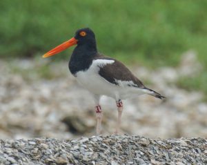 We headed back to Jones Bay then and checked on CA & Y2. They had had a chick on our last trip out but this time they weren’t there so I guess their chick didn’t survive. There are a lot of Caspian Terns and Laughing Gulls nesting there so it’s a tough spot for oystercatchers. We found 28 & AP’s second chick sleeping along the shoreline. It wasn’t with the family so we headed over to check it out. It let us get pretty close before it popped up and ran up to the ridge line. It looked like something was wrong with one of its wings but I couldn’t tell for sure.