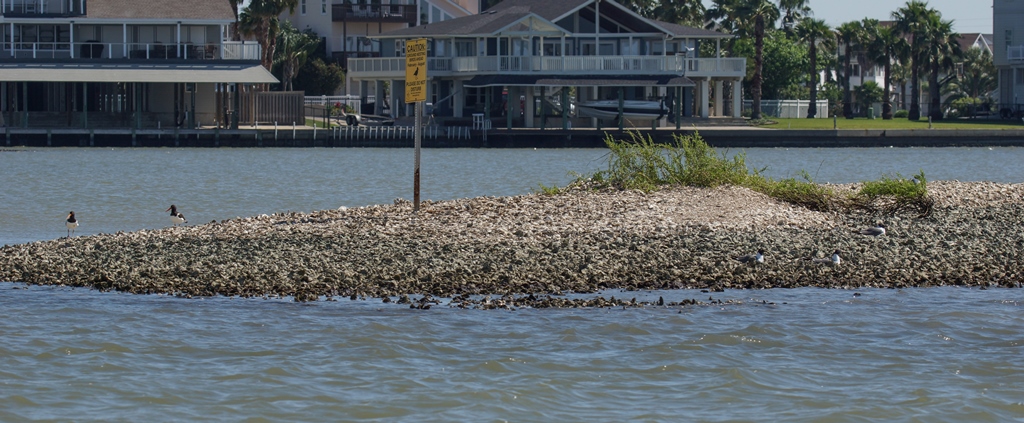 That stuff is amazing. Anyway, it was 10:00 by the time we got ready to go again. So much for an early start. Nothing was happening with the birds in Jones Bay so we headed down the GIWW to look for birds on the reefs. Amazingly there were none. I guess with so much exposed reef, they had lots of choices. Because of the low tide we couldn’t get into some areas so we had to observe from afar. The unbanded pair on the west end of North Deer was no longer incubating their nest which was good because it was time for it to hatch. We didn’t see them anywhere though. Hopefully they were hiding somewhere with chicks. H0 & JC were still incubating their nest but 23 & WY were not in their chick safe zone and just like the unbanded pair we did not see them anywhere. Hoping for the best there. YM & JH were also not visible until we got pretty close and then they popped up from some vegetation. We know their nest hatched last week so I’m guessing they were sheltering some chicks.