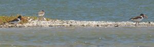 We headed out to Jones Bay and got stuck a couple times because the tide was so low but we made it out here just fine. If only the tide would stay this low things would be great for the oystercatchers! Here’s FR’s former island last week and this week. Quite a difference!