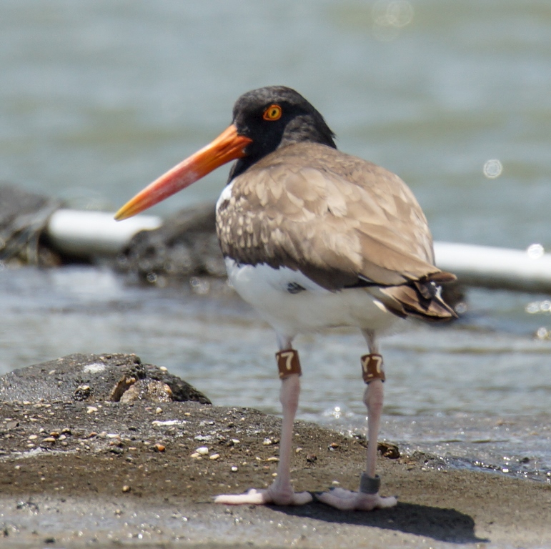 We had to change the tide gauge on Confederate Reef and thanks to Alan’s willingness to get soaking wet (again!) we got it done no problem. We checked the docks along Sportsman Road but there weren’t any birds there so we continued on to Gangs Bayou. The only oystercatchers there were A1A & unbanded on one of the small mounds behind the breakwater.